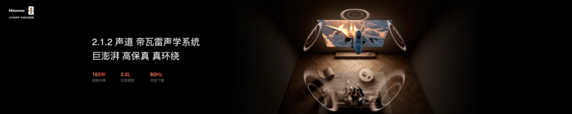 声学体验上,海信E7S Pro与法国顶级音响品牌帝瓦雷深度合作,打造2.1.2声道声学系统,突破轻薄机身的物理限制,实现60Hz的低音下潜与165W超强功率。前出音+侧环绕的黄金声学布局,让声音直面观众,彻底告别传统电视的墙壁音,帝瓦雷金耳朵团队历经数百个日夜的联合调校,让高音清亮、中音饱满、低音澎湃,带来Hi-End级的空气推动感,相当于为用户标配了一台国际顶尖的Hi-Fi音响。