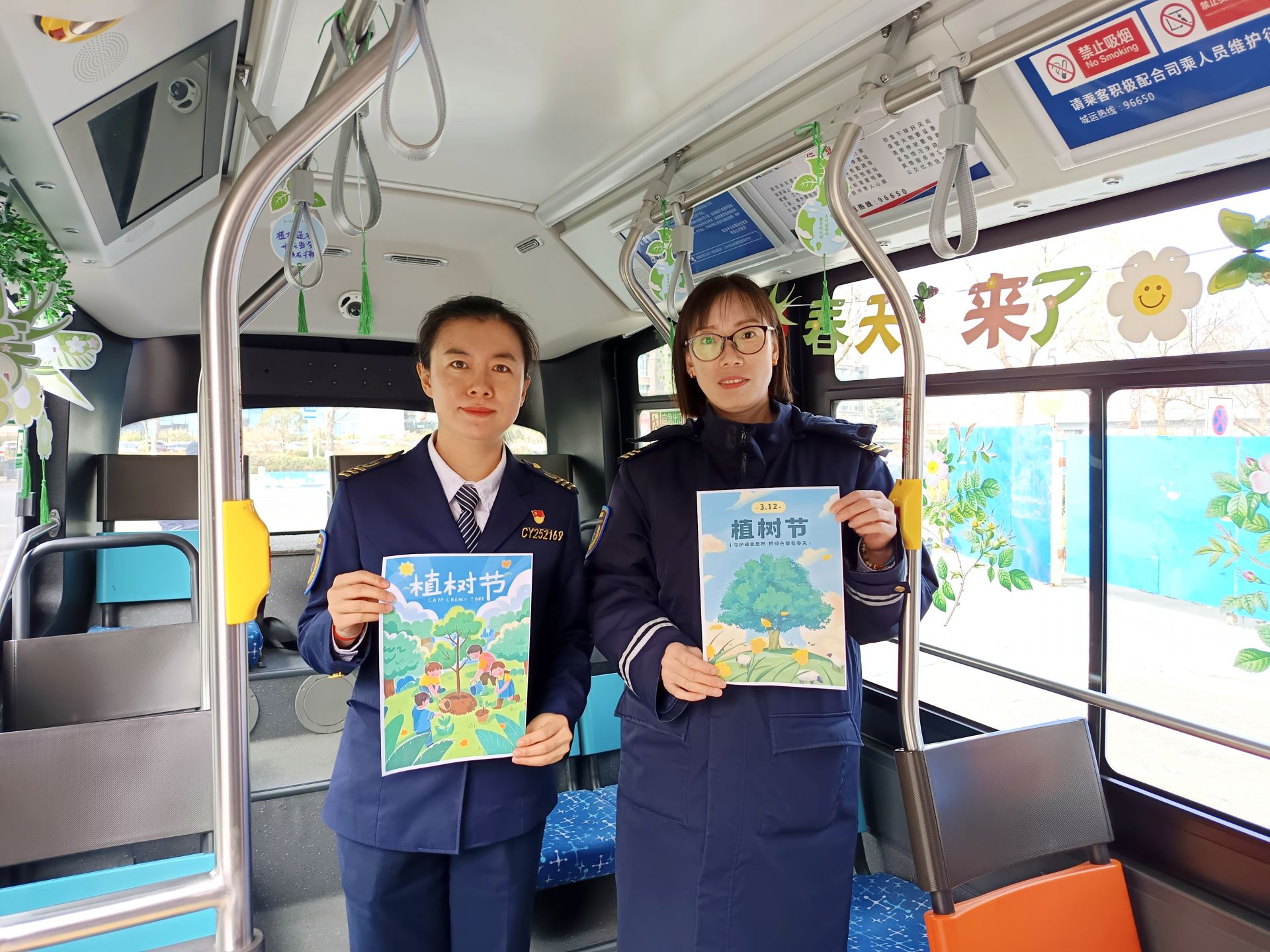 走进405路主题车,一辆充满生机与温情的春日主题车厢引人驻足。为营造浓厚的植树节氛围,工作人员提前筹备,用色彩鲜艳、造型多样的鲜花装饰品对车厢进行了全方位布置。车厢扶手与拉手上,小巧玲珑的鲜花挂饰随风轻摆,平添灵动气息;车内摆放的仿真绿植,则让一抹抹清新绿意扑面而来。整个车厢仿佛一幅流动的画卷,让乘客体验到“车在景中走,人在画中游”的春日出行乐趣。“一上车就被吸引了,太有春天的感觉了!”不少乘客赞叹,带孩子乘车的家长们更是借此机会,向孩子讲解植树节的意义,让车厢成为传递绿色理念的生动课堂。