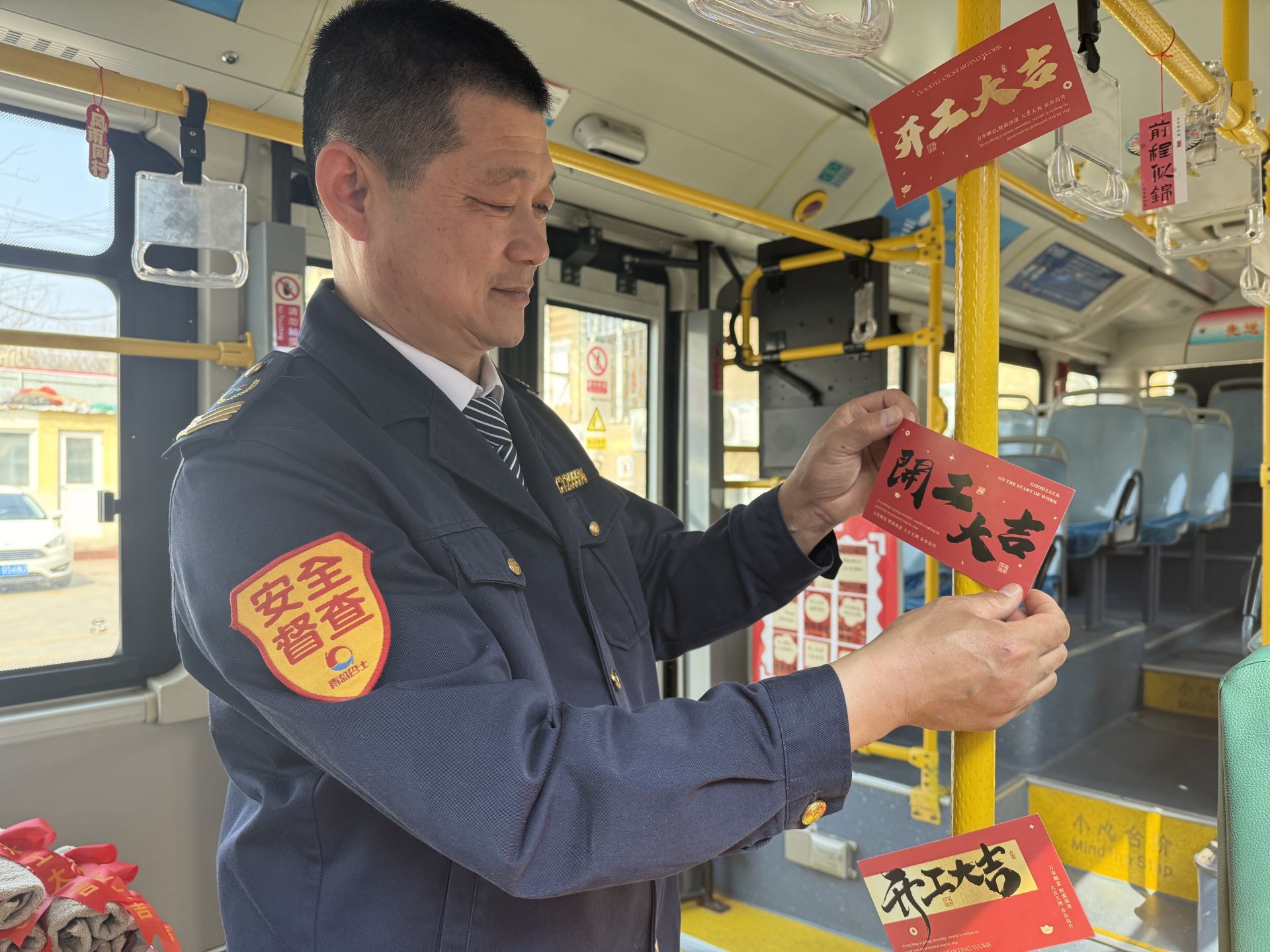 走进这趟“专线”,记者发现,车厢内贴着印有“开工大吉”“前程似锦”字样的红色卡片,洋溢着浓浓的祝福氛围。后门处的“祝福板”和“心愿墙”格外醒目,上面既有驾驶员对新市民的美好祝愿,也有乘客写下的新年目标和心里话。“今年多挣点钱”“希望家人平安健康”“新一年加油干”字里行间,是奋斗者的期许,也是一座城市对他们的温柔回应。