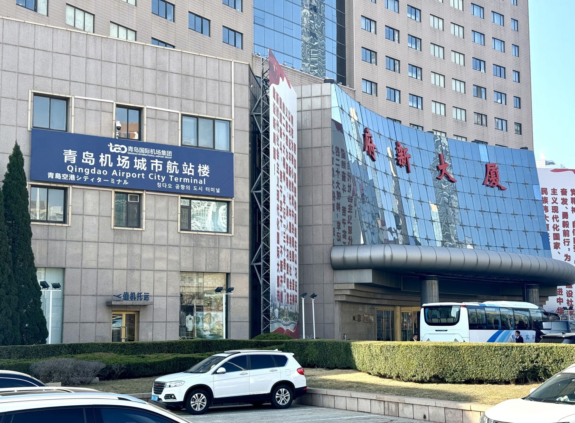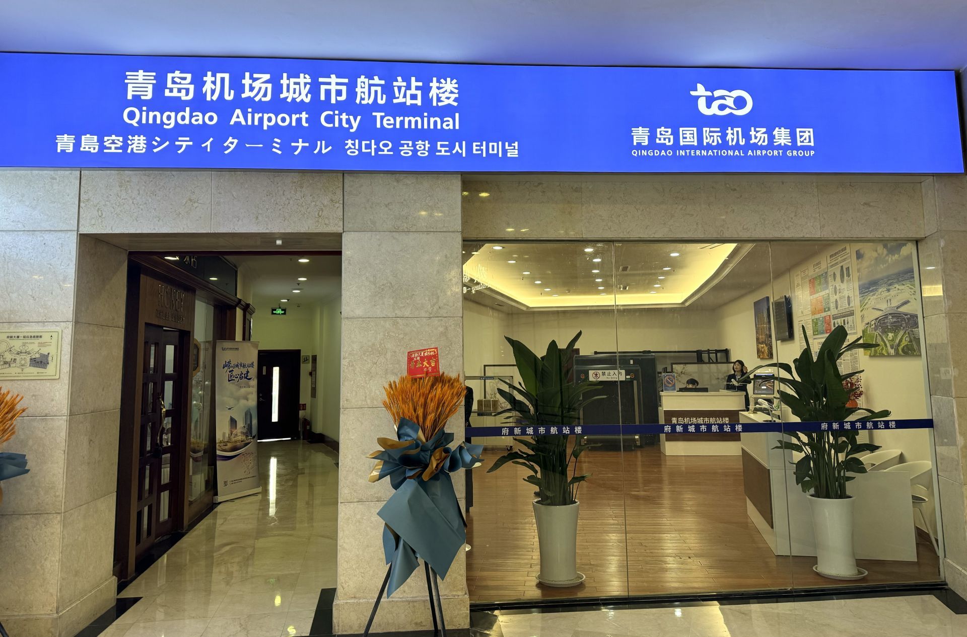 府新大厦地处青岛市行政、文化及商务核心区域,交通路网发达,要素资源集聚,是城区人流与信息流的重要交汇点。该城市航站楼的启用,实现了航空服务功能向城市中心的有效延伸。府新大厦城市航站楼全面构建“一站式”综合航空服务体系,提供商务接待、值机服务、行李托运(10元/件)、行李预安检及机场专线接驳(30元/人)等全流程服务。为提升出行效率,青岛机场为城市航站楼旅客设置优享安检通道,旅客凭登机牌签注标识,即可前往青岛机场 2 号、44 号安检专用通道便捷过检,现场绿马甲安检人员也将全程提供咨询引导服务,精准解决旅客出行疑问。通过将机场核心服务前置、专属服务赋能,不仅大幅缩短了旅客在机场现场的候机时间,更有效满足了商务旅客及社会各界对高品质、高效率出行的迫切需求,显著提升了城市航空服务的辐射能级与体验感。