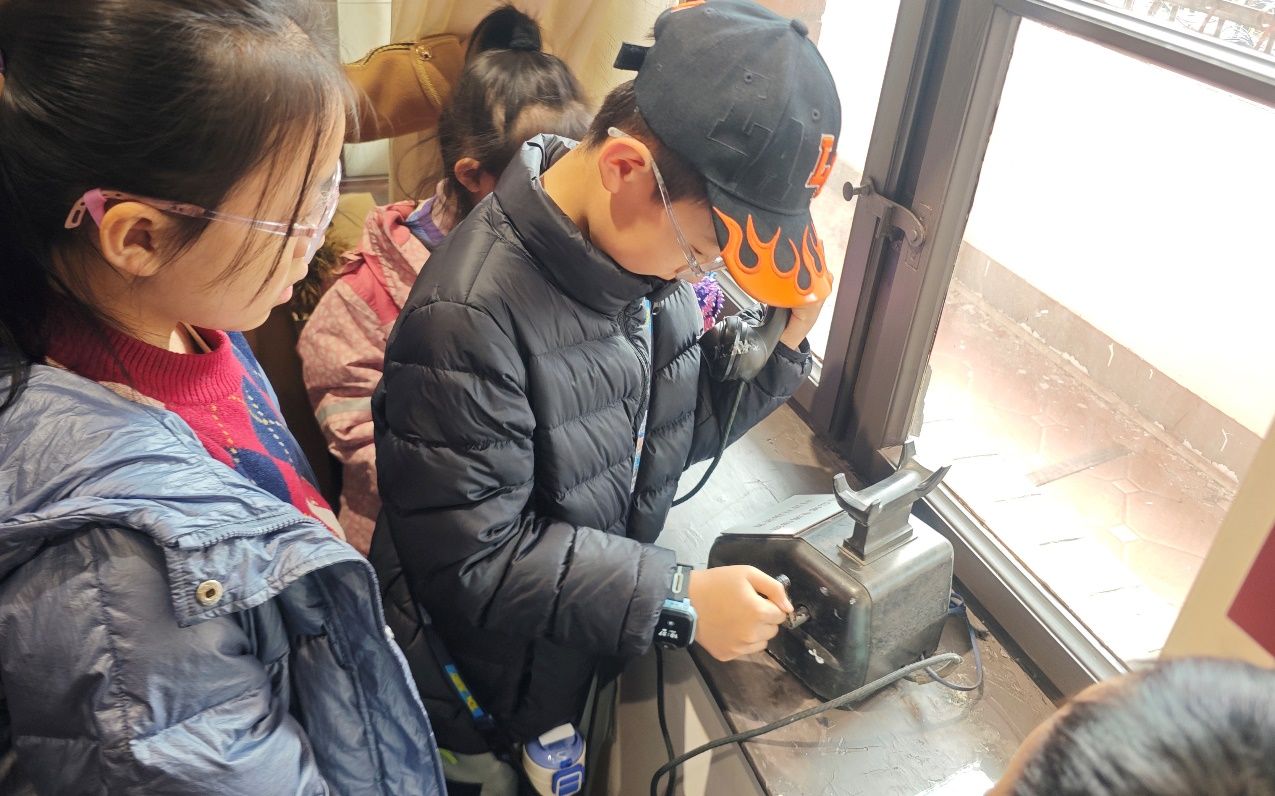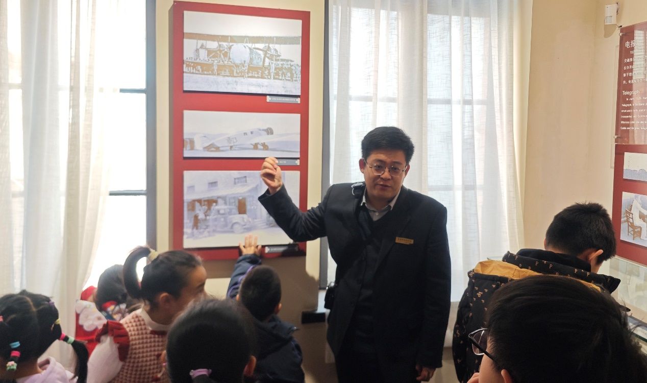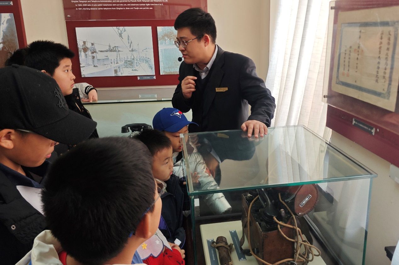 馆内镇馆之宝——1905年爱立信生产的电话设备,因年代久远、存世量极少(全世界不足10个)且至今仍可使用,让小记者们驻足观察、心生敬意。展区还原了1922年北洋政府收回青岛主权的历史场景,王老师介绍,五四运动后,青岛邮电通信主权也随之收回,还顺带科普了青岛方言“古力盖儿”的由来。此外,馆内还呈现了1922年青岛成立邮电交通电路局的历史,复原了青岛第一任胶澳商埠电话局负责人孔祥熙的办公室,同时展示了1929年青岛设为直辖市、1932年通过飞机运送邮件的往事等,让小记者们对当时的社会状况有了直观认识。