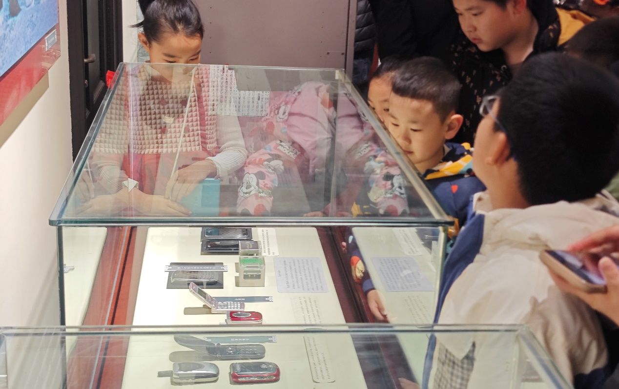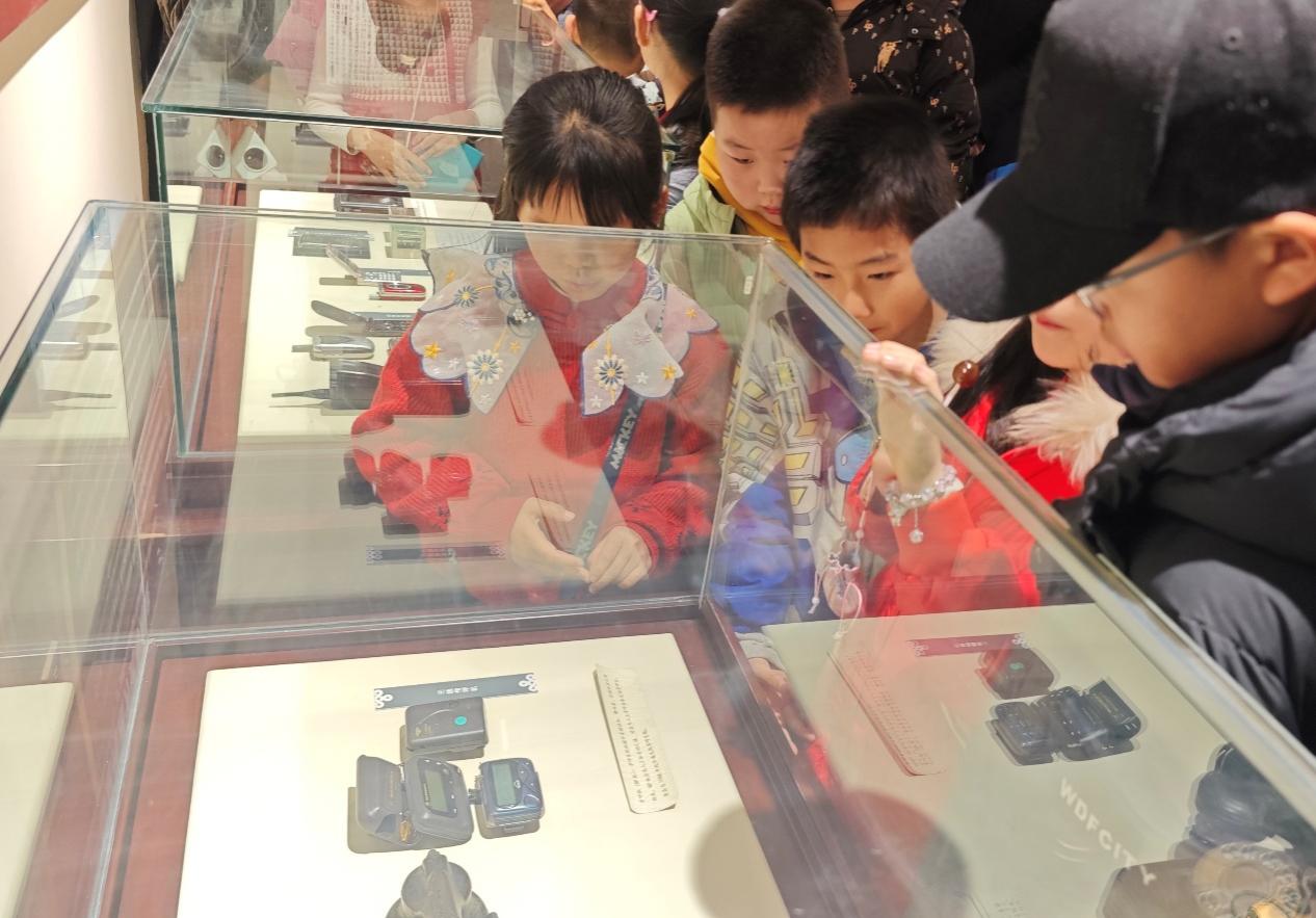 拾级而上至二楼历史文物主展区,这里按时间脉络划分多个展厅,王老师重点讲解了青岛通信发展源流,介绍青岛最早的通信可追溯至600年前的驿站,展区内的复原门头便是重要见证。从壁挂式电话、BB 机、大哥大到小灵通、2G和3G手机,各类通信设备清晰展现了近现代通信方式的演变。