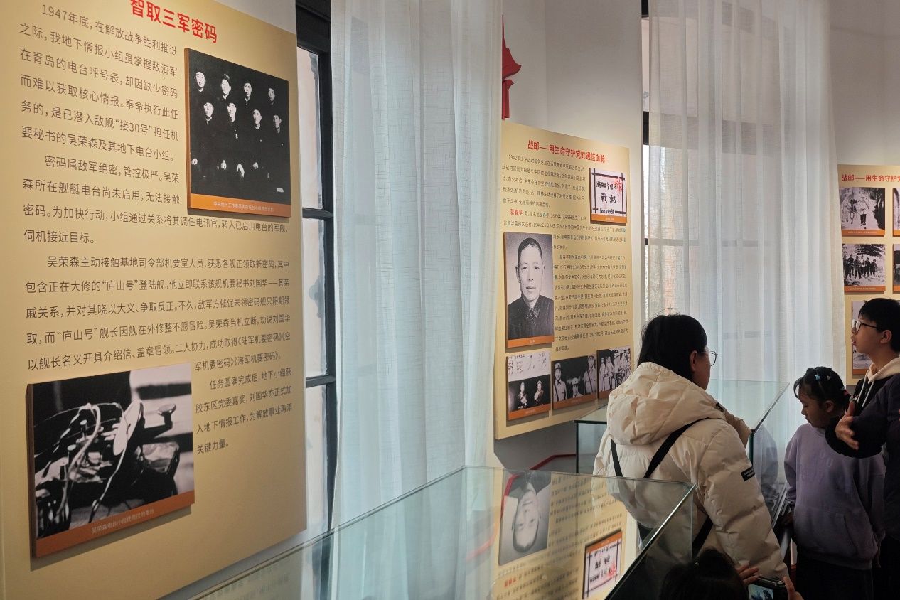 三楼红色展厅内复原的青即战役作战室,展现了战地通信保障的重要性。而吴荣森、徐子兴、赵鲁豫等邮电系统地下工作者的英雄事迹,更让小记者们深受感动:吴荣森潜伏青岛截获关键情报助力城市解放,徐子兴击毙叛徒后暴露牺牲,赵鲁豫带领女工罢工维权,后因党组织遭破坏失联病逝。这些故事,让小记者们深刻体会到红色通信人忠诚无畏、无私奉献的崇高精神。
