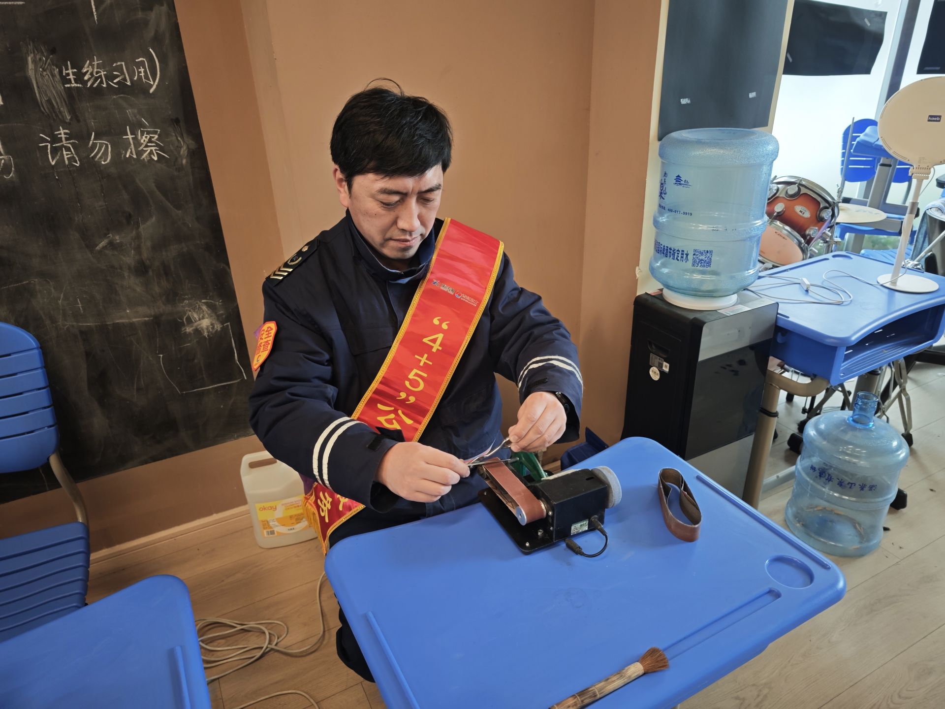 同年7月,他与同事们走进虎山路街道龙苑社区,支起磨刀摊位,专注打磨居民送来的菜刀、剪刀,不到两小时便处理了30余件。在与辽源路街道辽阳西路社区联合开展的公益活动中,王灵军作为“邻居”,与居民建立了深厚情谊。临近年关的一次活动,他一人打磨了近百把刀具,即使手磨破了皮也全神贯注。“你看那些大爷大妈,拿着刀来,眼巴巴地看着你。磨亮了,他们高兴,我心里也亮堂。磨的不是刀,是邻里之间的那份情。”他说。