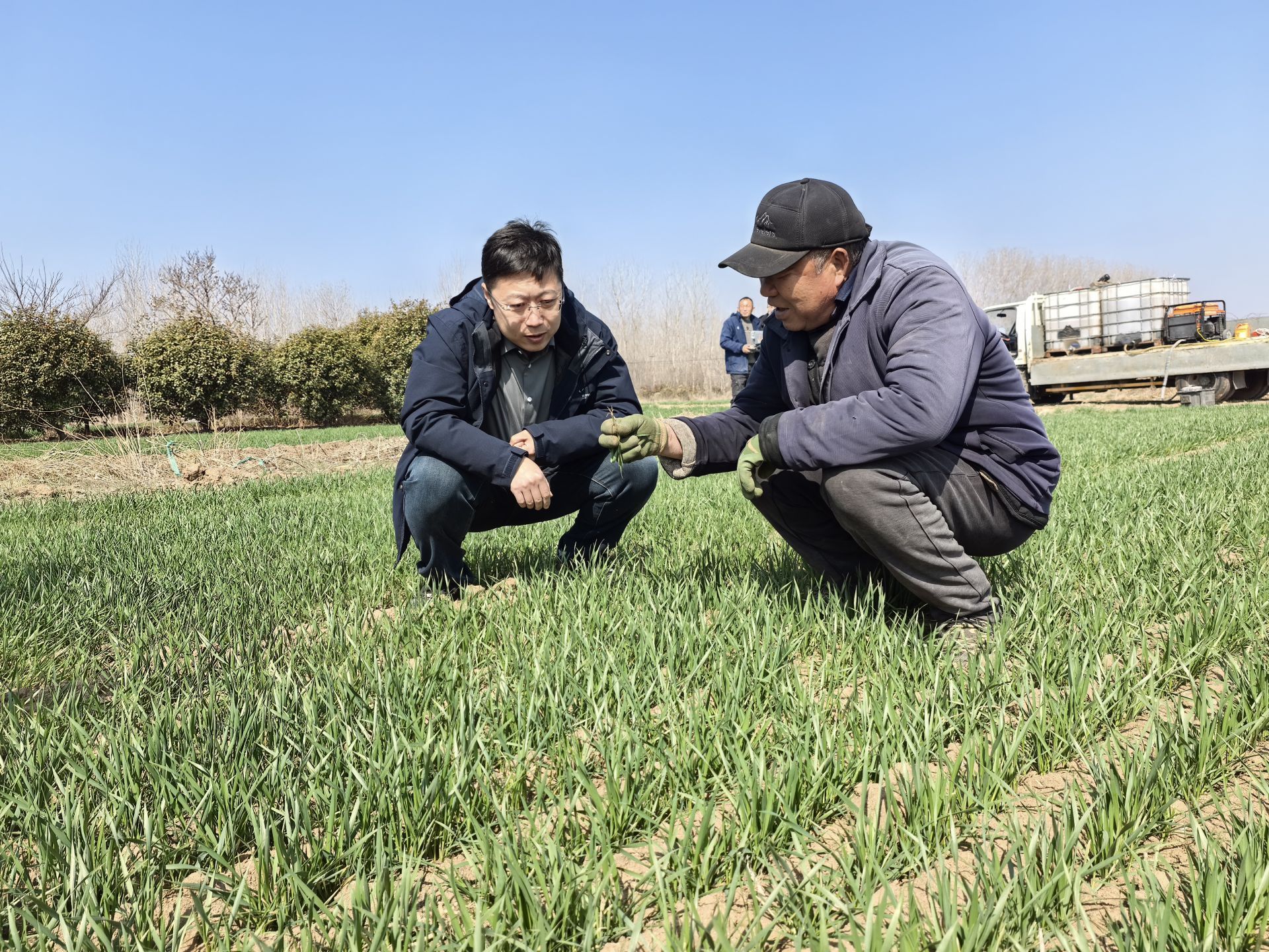 农技人员正深入田间地头,手把手指导农户开展小麦返青管理。