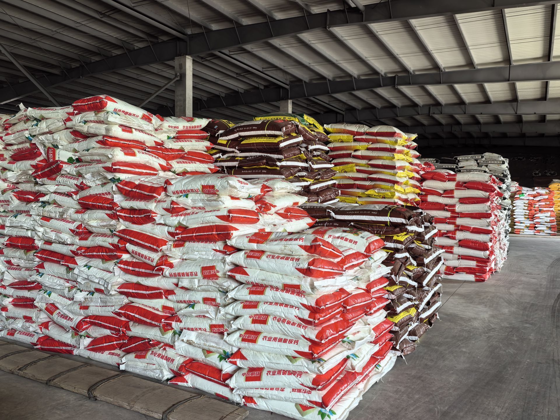 世纪绿洲农资仓库内,化肥等农资储备充足,可满足春耕期间农户生产需求。