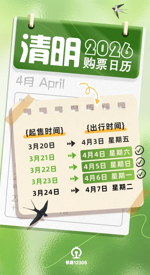 下滑查收2026【清明购票日历】吧~