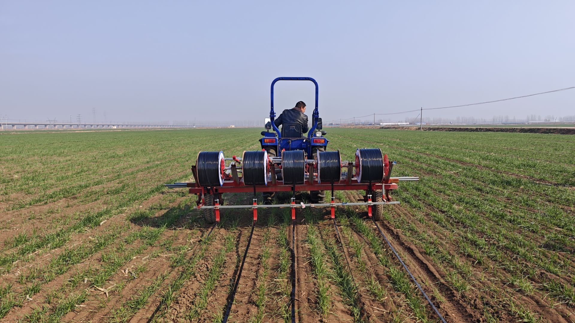 春分麦起身,肥水要紧跟。此时正是小麦水肥管理的好时候,3月20日,莱西市夏格庄镇的麦田里,牵引式滴灌带铺设机正来回穿梭,黑色的滴灌带如细密的毛细血管,将配好的水肥精准输送到每一株麦苗根际。在这里举办的青岛市绿色增粮小麦滴灌水肥一体化演示观摩现场,一场关于科技如何"喂养"麦苗的变革,正揭开序幕。