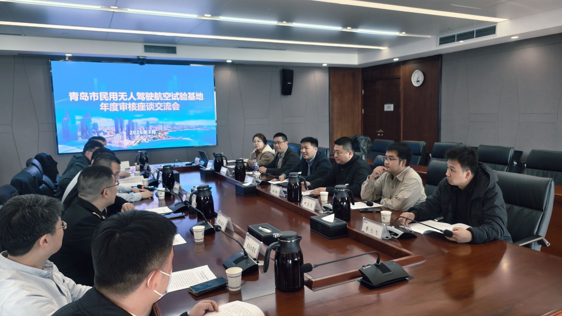 近日,中国民航华东地区管理局年度审核组一行通过实地考察与听取汇报的形式,对青岛市民用无人驾驶航空试验基地年度工作开展审核,青岛市交通运输局、市运输事业发展中心、青岛地铁集团、青岛自贸区、黄岛海关、北海航保中心青岛航标处、通远联合等相关单位参与迎审工作。