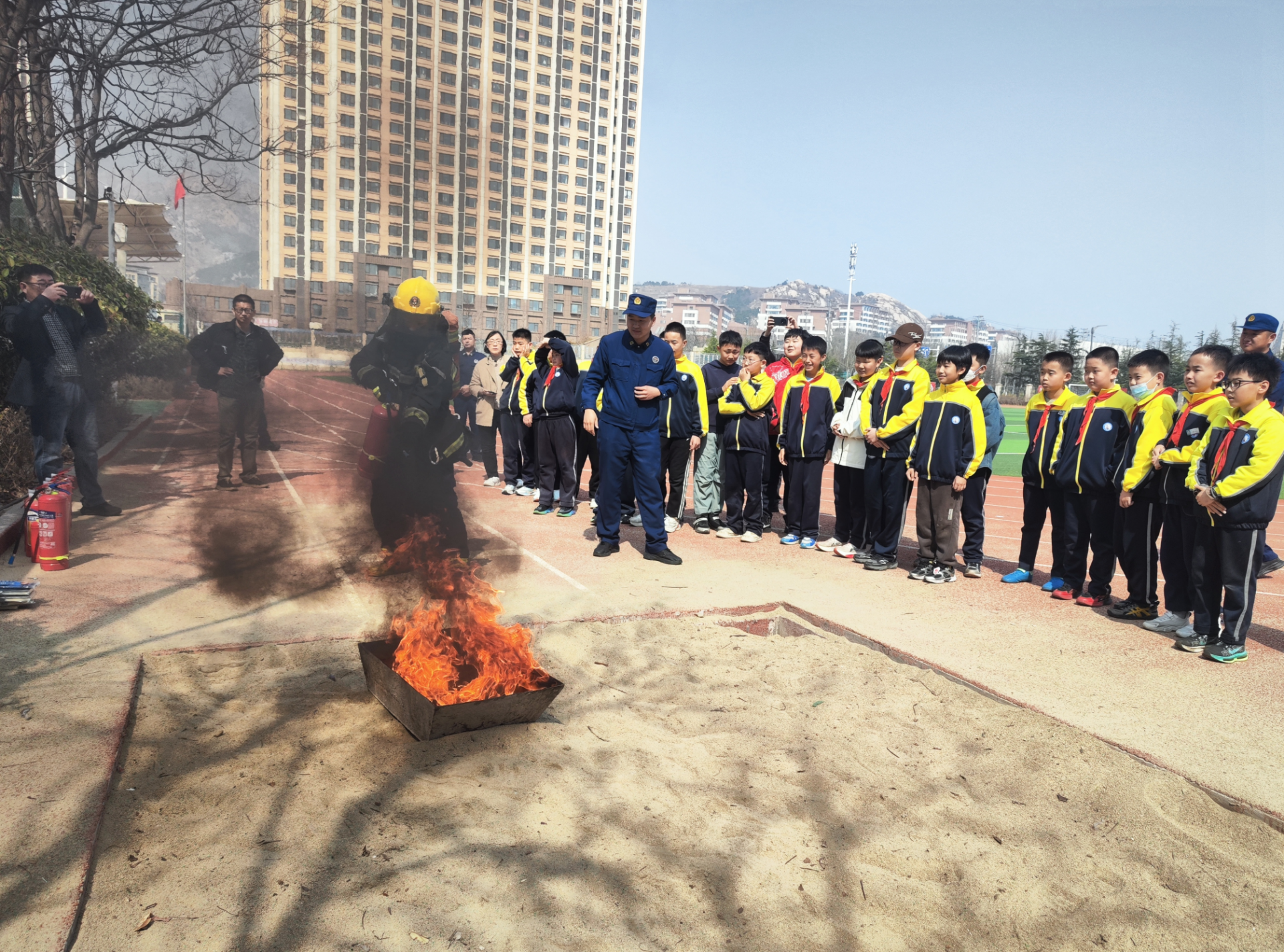 为切实提升广大师生消防安全意识和自防自救能力,充分发挥消防救援队伍专业优势,3月25日,青岛市黄岛区消防救援局走进黄岛区朝阳小学开展消防安全培训活动。