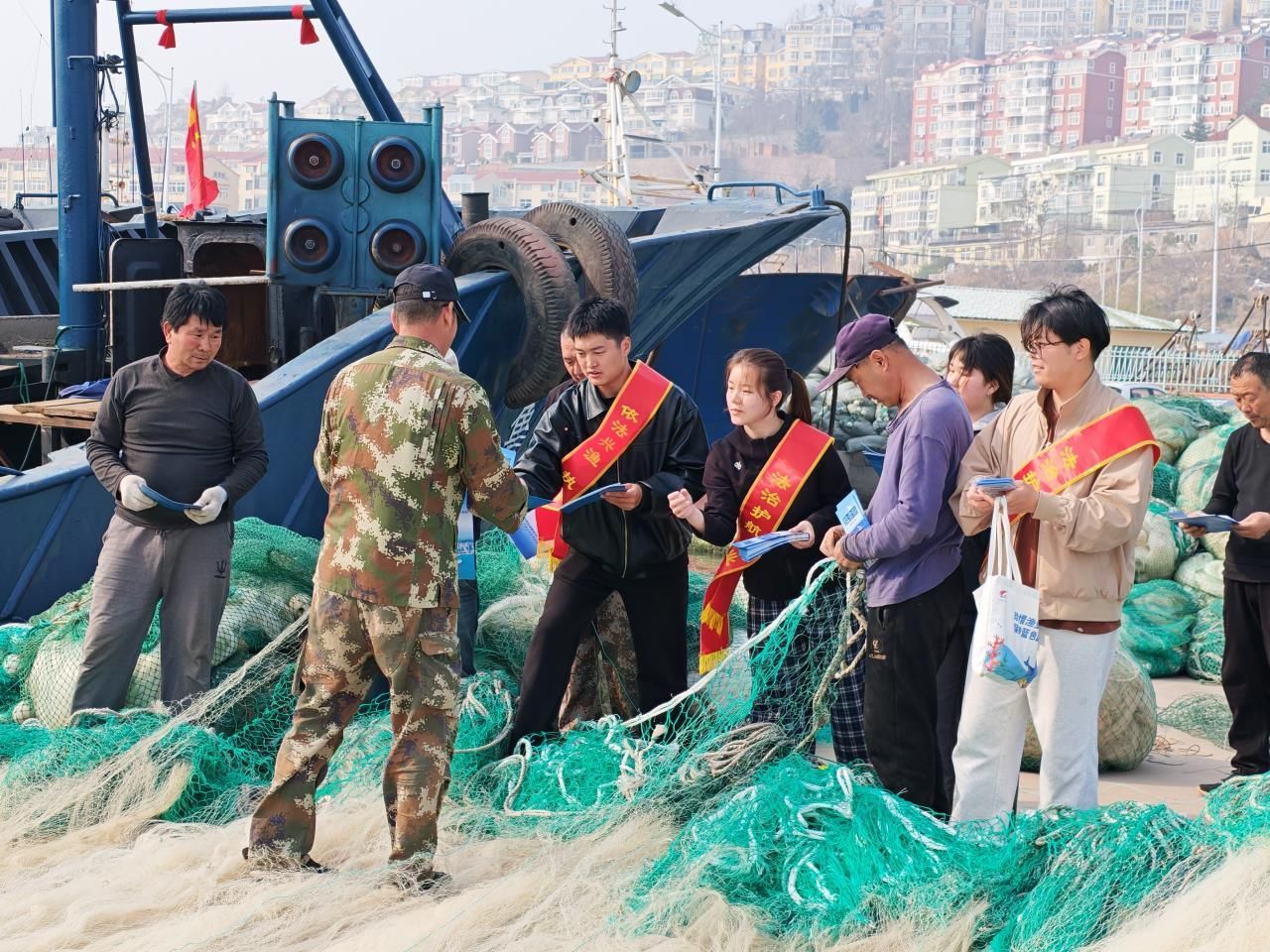 日前,青岛市海洋发展局联合辖区渔业主管部门及中国海洋大学师生志愿者,组建联合普法小组,深入一线渔村(社区)、渔港码头及乡村大集市,开展为期三天的《中华人民共和国渔业法》面对面普法宣传活动,把法治温暖和政策服务精准送到渔民群众身边。