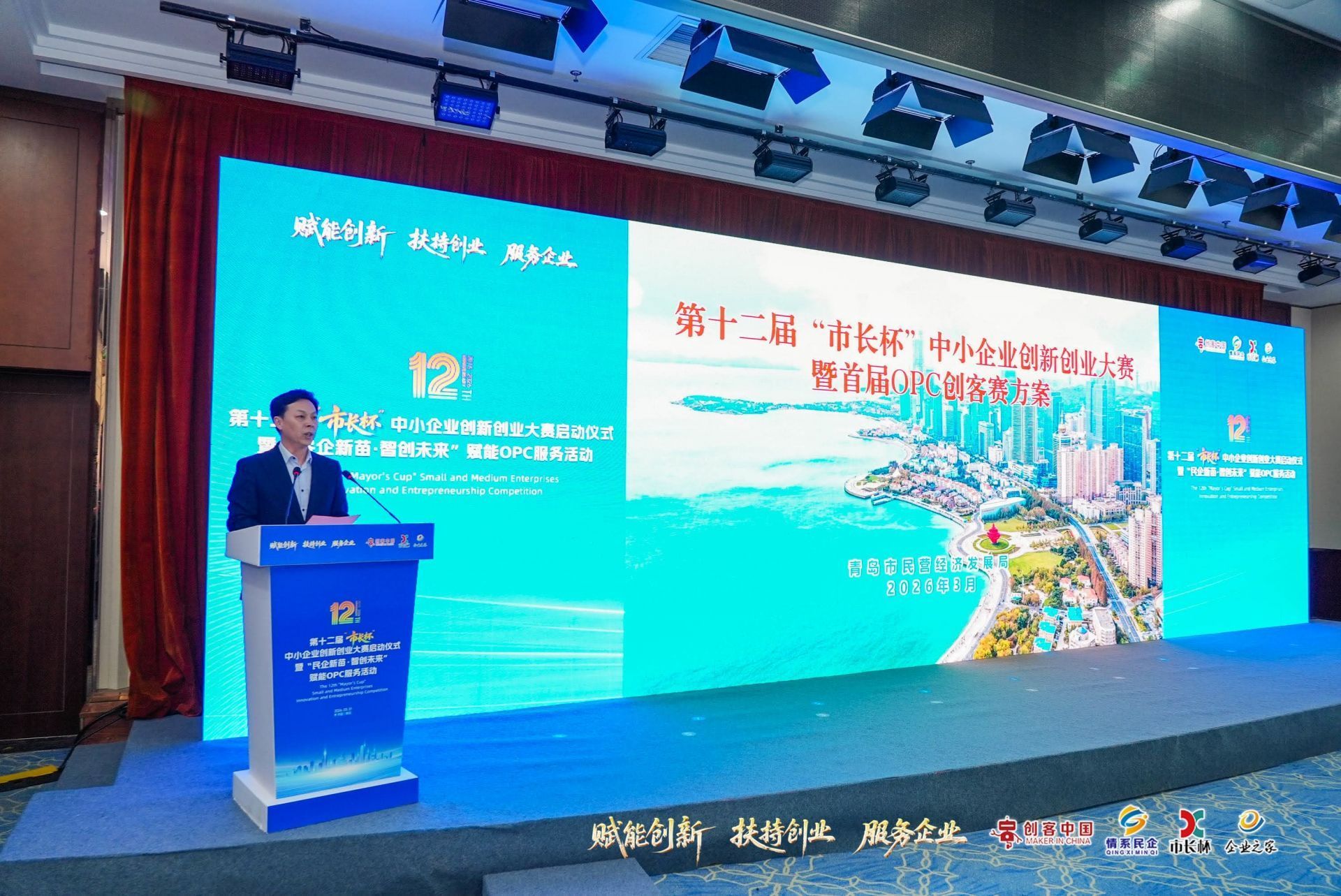 3月31日,第十二届“市长杯”中小企业创新创业大赛启动仪式暨“民企新苗·智创未来”赋能OPC服务活动在青岛创业赋能中心举办,现场为第十届“创客中国”中小企业创新创业大赛优秀组织单位授牌,青岛市民营经济局、青岛市行政审批局、青岛开放大学等有关单位领导共同启动大赛。