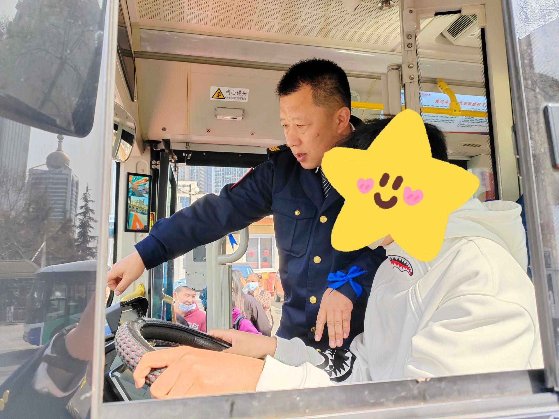 理论讲解之后,最受孩子们期待的“换位体验”环节开始了。在驾驶员柳斌的带领下,孩子们轮流登上公交车驾驶室,坐在驾驶员的位置上透过车窗和后视镜仔细观察。与此同时,其他孩子在安全员的引导下,站在车辆四周的盲区位置。