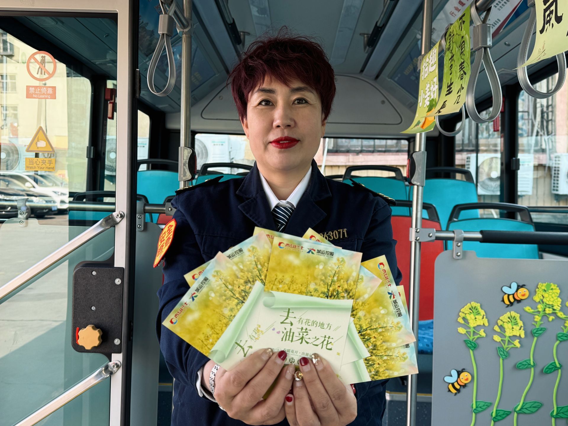 4月8日,“春日花田”主题车驶入李沧体育中心始发站。不少乘客被满车的装饰吸引,纷纷驻足观赏。为进一步增添春日出行趣味,李沧巴士公司同步推出“青岛巴士·油菜花主题明信片”互动活动。乘客只需在乘坐115路主题车厢时,拍摄照片发布至社交媒体平台,并带上#绿色出行,一起坐公交车赏油菜花#话题,即可获得精美明信片,在出行途中收获一份春日小惊喜。