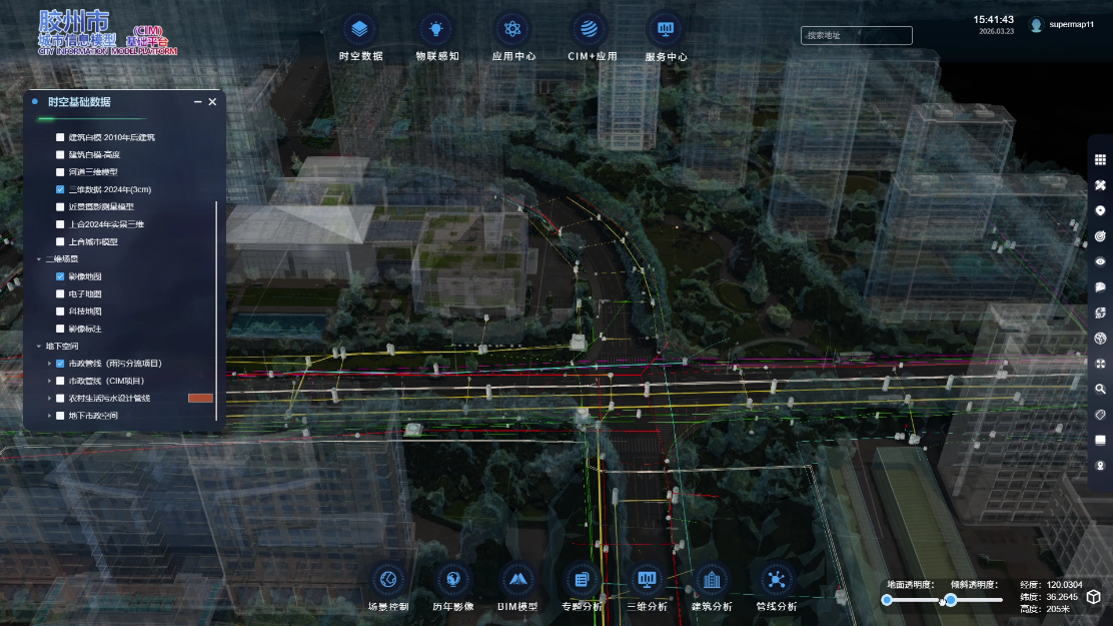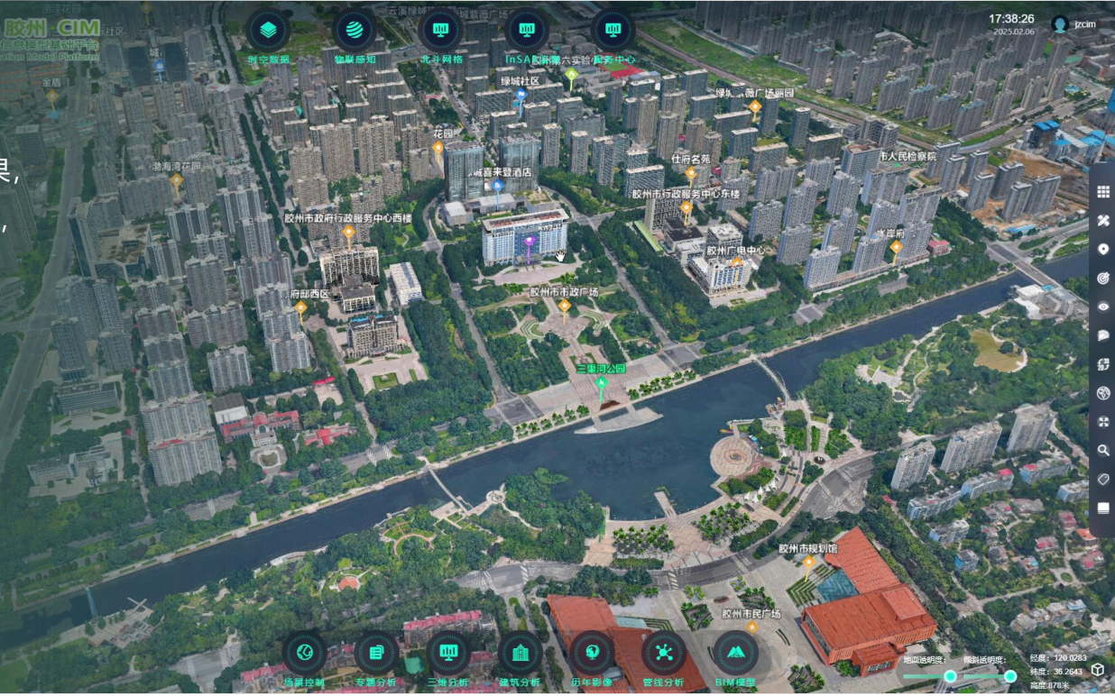 胶州市CIM平台以“筑基”为首要任务,汇聚融合了全市域范围内的时空信息、建筑BIM模型、基础设施、城市运行等多源异构数据,摸清了城市的“骨骼肌理”,为“数字胶州”提供了唯一、权威、精准的数字空间底座。这一“数字底座”实现了从地面到地下、从历史到未来、从陆地到水域、从静态到动态的城市全貌精细化呈现,在数字世界为胶州打造了一个实时、鲜活、可交互的“孪生体”,使跨层级、跨地域、跨系统的数据共享与业务协同成为可能。平台以数字住建为支点,全面服务数字城市建设,为胶州城市管理、应急指挥、市政运维等提供统一数字支撑。