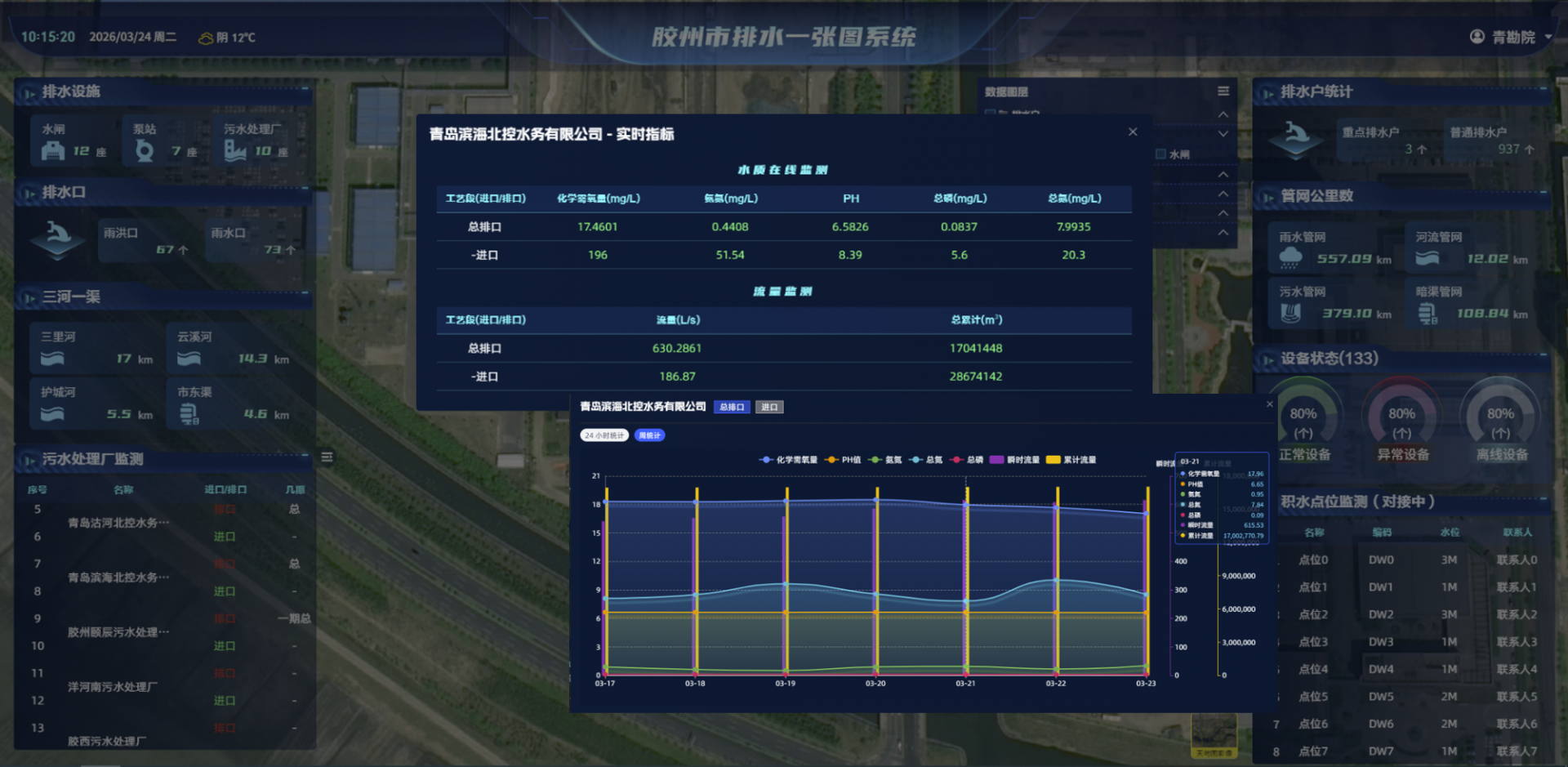 作为融合多项关键技术的城市级数字化平台,胶州CIM以硬核科技赋能新质生产力,为城市高质量发展注入源源不断的创新动能。依托CIM平台强大的时空分析、模拟仿真与可视化能力,围绕城市供给保障、综合管理、城乡治理和综合运营4大主题拓展了10个应用场景,推动城市治理从“单点监管”向“系统智治”转变。例如:通过打通供热企业监测数据,实现供热系统“源-网-站”全实时数字化管理,提升供热保障水平与群众满意度;通过打通污水处理厂监测数据,创新“厂-网-河”一体化管理与“按效付费”激励模式,使企业主动优化污水处理,彰显平台管理考核创新的核心价值。