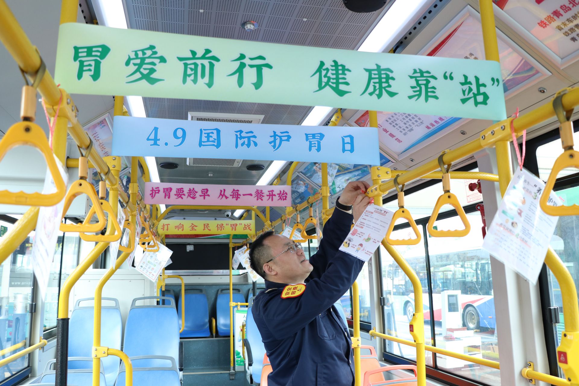 4月9日是第21个国际护胃日。为提升公众对胃部健康重视度,向市民传递科学护胃知识,近日,青岛城运控股公交集团李沧巴士公司(以下简称“李沧巴士”)以“‘胃’爱前行・健康靠‘站’”为主题,在207路线上打造了“护胃”健康主题车厢,将公交车厢变为流动的科普馆,并在青岛北站开展线下公益宣传活动,用一碗热粥、一份科普、一路陪伴,为市民与一线驾驶员送去实实在在的健康关怀。