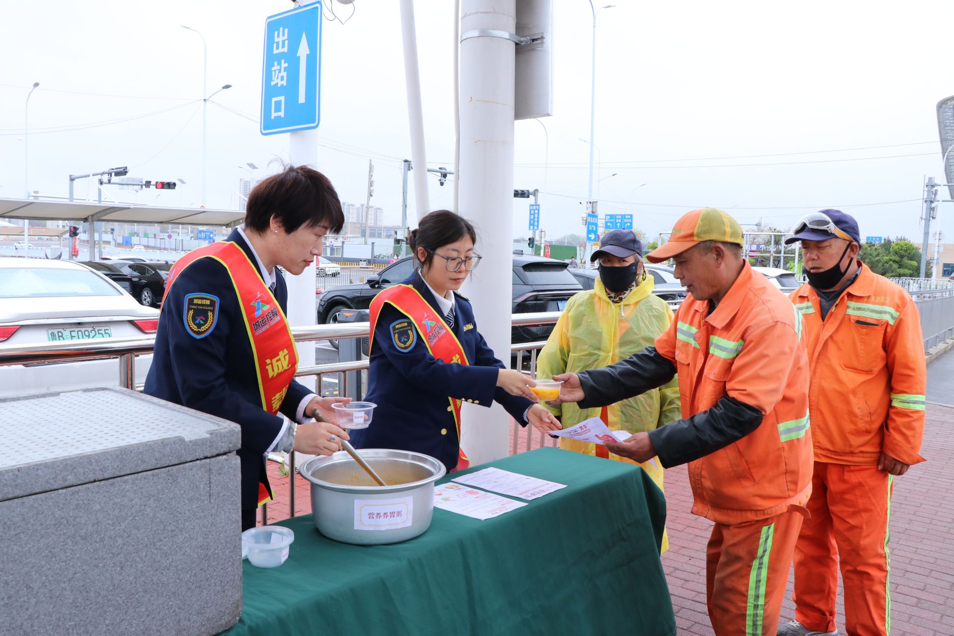 活动当天,“青岛巴士”志愿者们还在铁路青岛北站东广场公交站点开展了线下护胃公益宣传活动。活动现场,志愿者们为过往乘客、环卫工人准备了暖心养胃粥,同时还在现场一对一科普养胃常识,发放护胃知识宣传册,将科学的护胃理念传递给每一位市民。