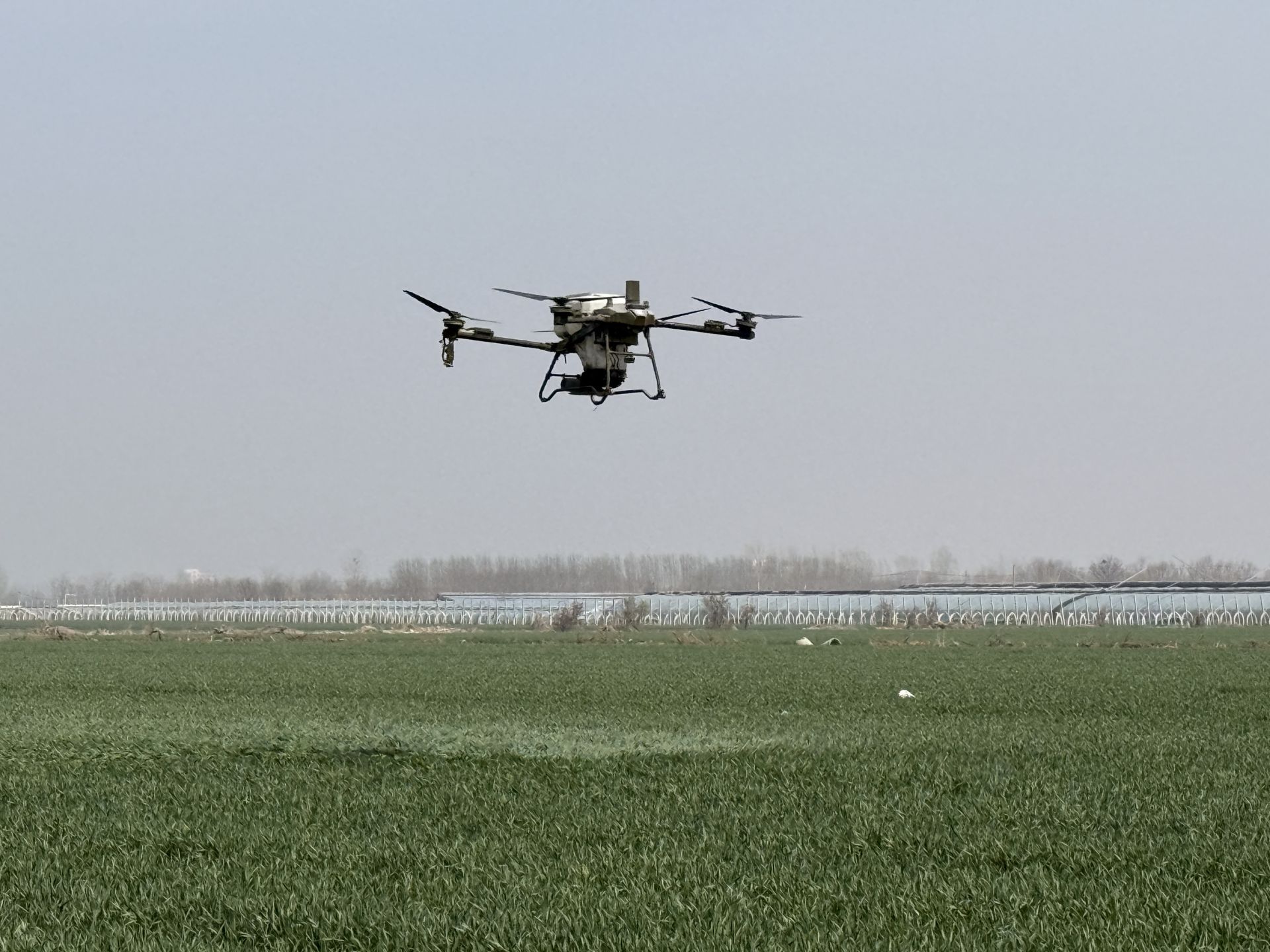春风拂沃野,飞防助农忙。在平度市蓼兰镇绿色增粮先行区小麦基地,植保无人机腾空而起,按照预设航线平稳飞行,均匀喷洒药液,开启春季病虫害统防统治的“空中作业”模式。“以前人工打药,一天最多忙活三五亩地,累得腰酸背痛;现在用无人机,一架一天能作业300多亩,效率提升几十倍!”种植大户老王看着空中穿梭的无人机,满面笑意。他介绍,自家200多亩小麦以往靠人工防治,成本高且易喷洒不均;无人机飞防能精准控制药量和范围,防治效果更有保障。
