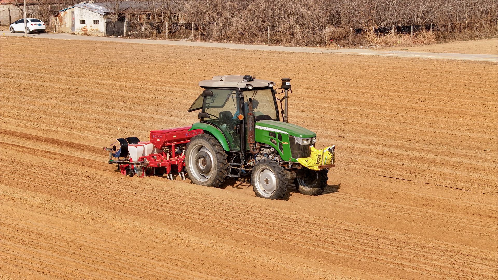在平度市同和街道的田垄间,马铃薯种植正上演高效春耕大戏——北斗导航拖拉机牵引深耕翻转犁,同步完成土地平整;马铃薯播种机紧跟其后,一次完成开沟、起垄、播种、施肥、覆膜全流程作业。“我们30余台北斗导航拖拉机,配套深耕犁10台、旋耕机20余台、播种机6台。导航技术让农机行进偏差控制在±2.5厘米,土地平整均匀;直线作业使每10亩地能多播半亩马铃薯,效率和质量双提升,今年春季已作业7000余亩。”青岛鸿运农机专业合作社社长高洪云介绍。