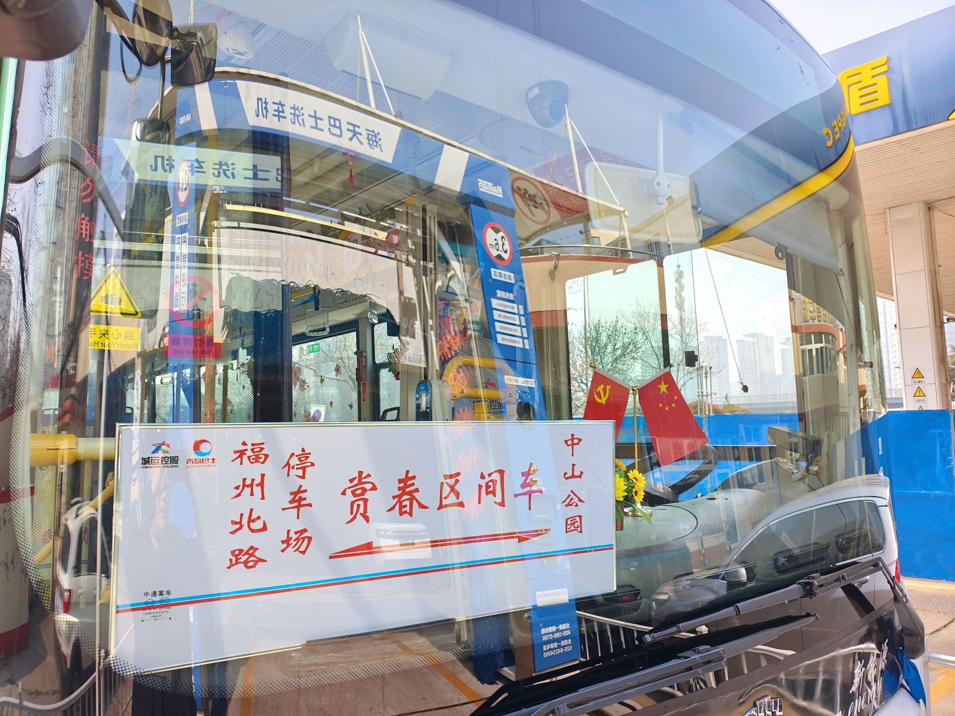在220路、228路、7路等线路上,仿真花艺、赏花贴纸、智能语音播报等细节同样让乘客沉浸其中。专程打卡玉兰的游客张女士表示:“一上车就看到满车厢的玉兰装饰,还有详细的赏花攻略,连拍照技巧都标好了,太贴心了!”