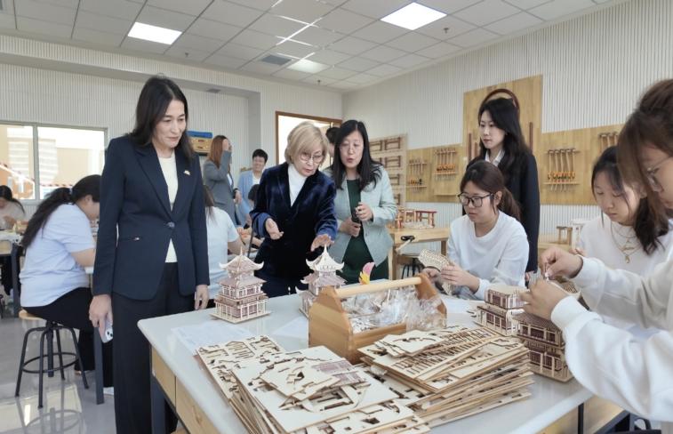 巴努・纳尔别科娃高度赞赏青岛幼儿师范高等专科学校鲜明的师范办学底色、扎实的学前教育专业优势与高水平国际化办学成效。她勉励访学学子珍惜宝贵机遇,亲身感受中华优秀传统文化的魅力,研习中国先进的教育理念与教学方法,努力成为传递中哈友谊、推动教育交流的友好使者。同时,她表示愿与学校进一步深化务实协作,加快推进上合组织教师教育联盟筹备工作,在师生互访交流、课程共建共享、学生交换培养、跨境实训基地联动等领域拓展更多合作空间,携手提升区域教师教育整体水平。