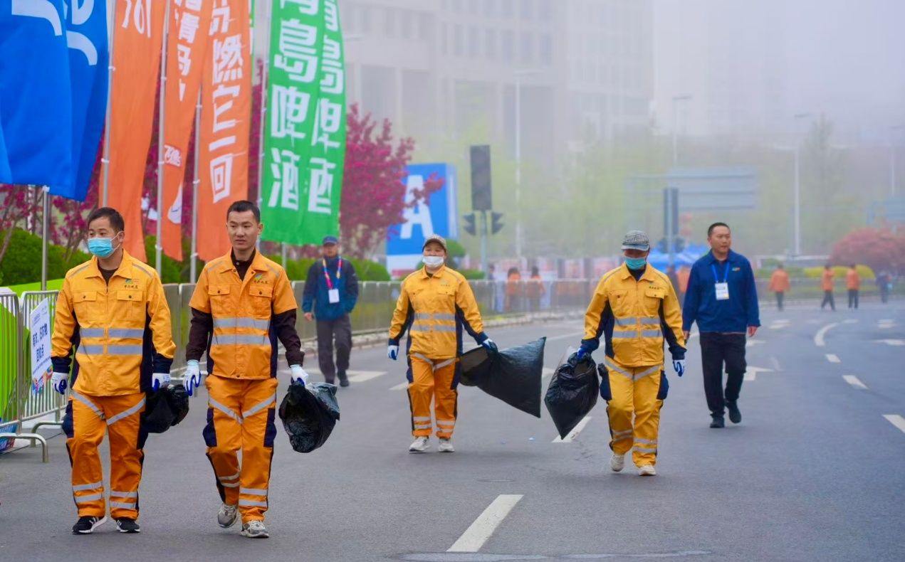 令人印象深刻的是,德比赛后一小时内,球场周边交通管制与公交接驳便高效完成;青马赛前凌晨,3800名志愿者与环卫工人已准时到岗,确保赛道一尘不染。从青马沿途的音乐加油站、特色补给站,到西海岸球迷的专列保障,再到九球赛事的国际化服务,青岛构建起全方位、立体化的赛事保障体系。
