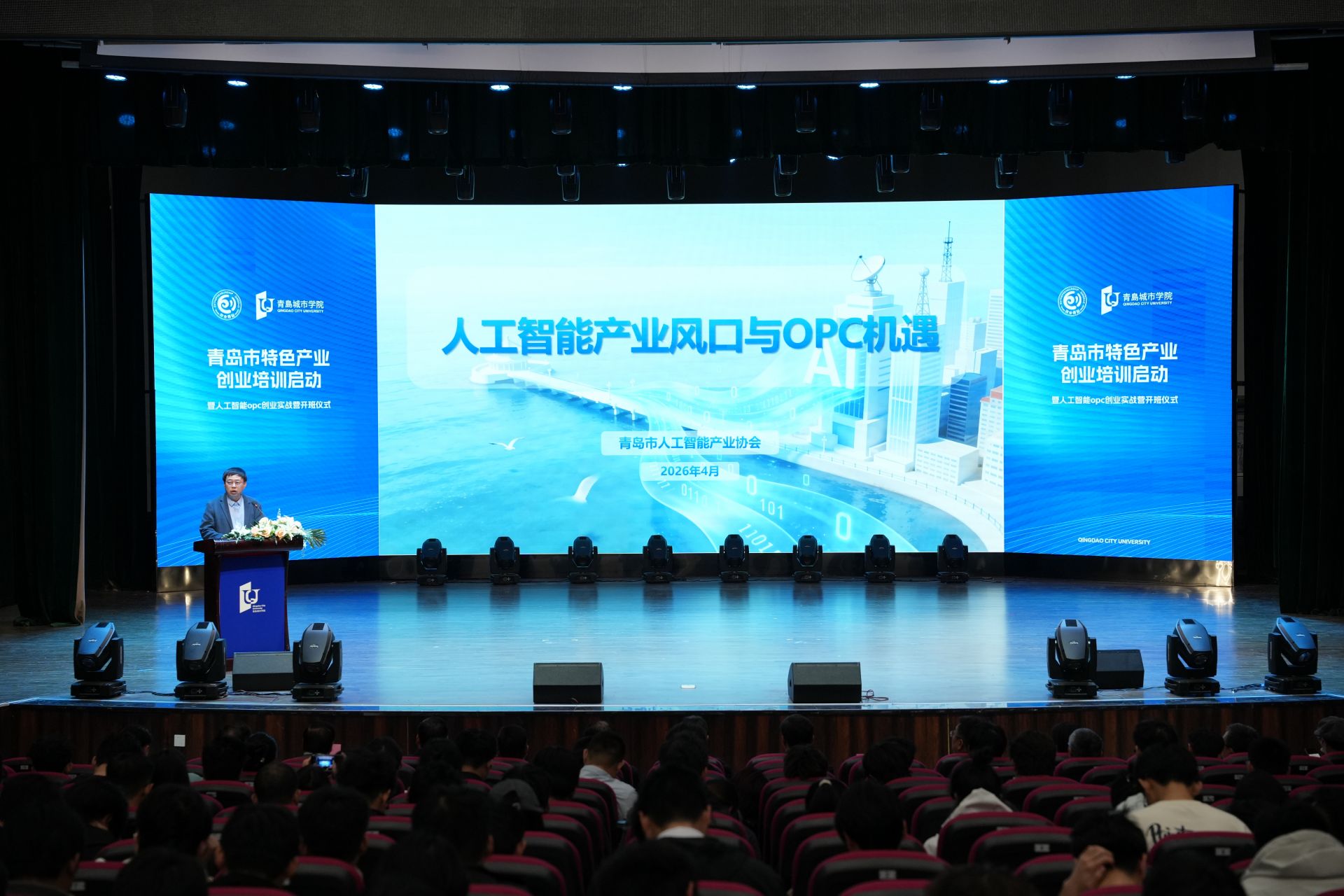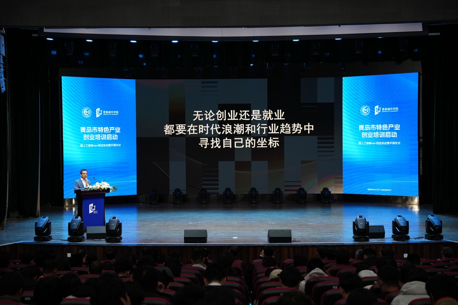 为精准对接青岛重点产业发展需求,加快培育新质生产力、壮大OPC规模,由山东省人力资源和社会保障厅指导,青岛市人力资源和社会保障局、青岛市工业和信息化局、青岛城市学院联合主办的青岛市特色产业创业培训启动暨人工智能OPC创业实战营开班仪式,近日在青岛城市学院顺利举行。400余名高校师生、行业协会代表、创业导师现场参会,围绕人工智能产业创业机遇、青年人才培养路径、产教融合落地模式等核心话题,开展面对面交流研讨,现场氛围热烈。