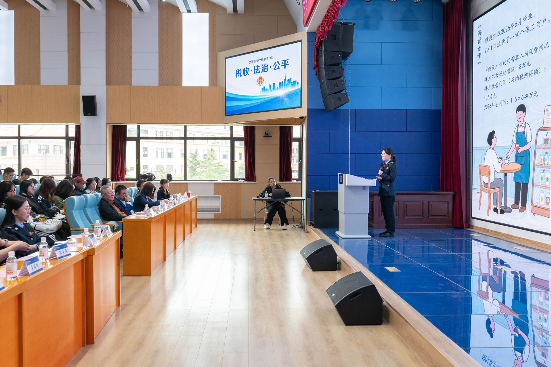 为深入落实第35个全国税收宣传月部署要求,紧扣“税收·法治·公平”主题,近日,国家税务总局青岛市崂山区税务局创新开展税法宣传“三进校园”系列活动,先后走进中国海洋大学、青岛科技大学、青岛大学,通过宣讲课堂、招聘服务、面对面交流等多种形式,将税法知识送到青年学子身边,为大学生就业创业注入“税动力”。
