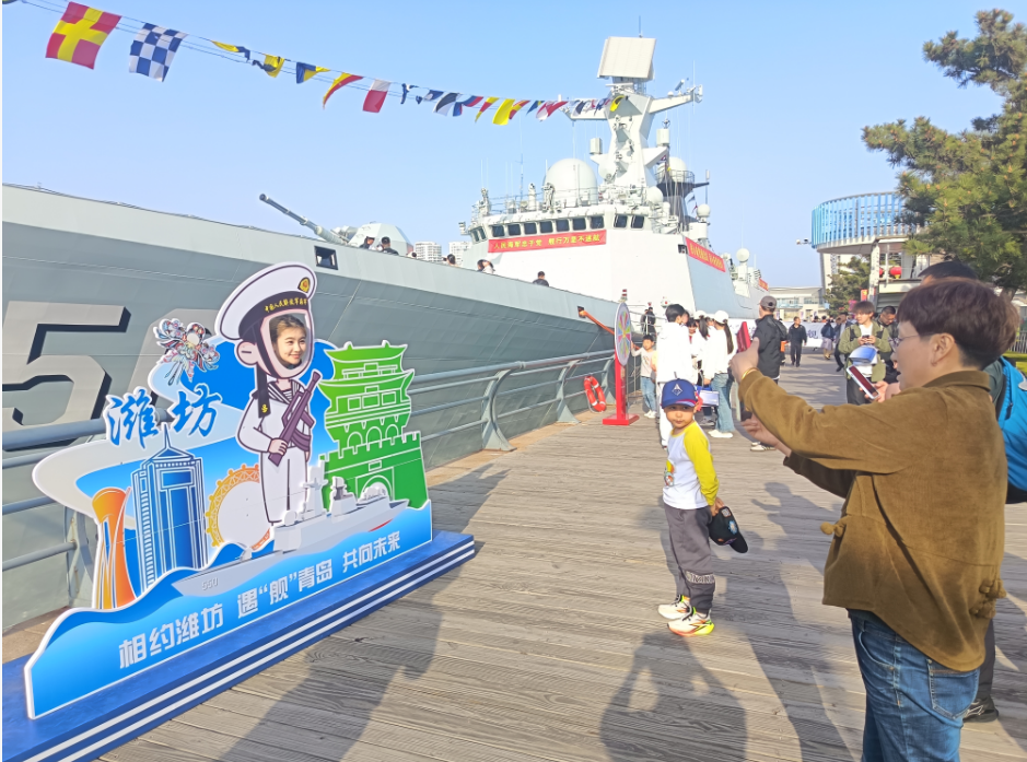 活动期间,052D型导弹驱逐舰乌鲁木齐舰、齐齐哈尔舰、054A型护卫舰芜湖舰、潍坊舰、东平湖舰、阳澄湖船等战舰悬挂满旗,以海军最高礼仪迎客 。青岛市民早早排队等候,在官兵引导下有序登舰,近距离参观舰炮、导弹发射装置、舰载直升机等装备,聆听舰艇执行护航、联演等重大任务的故事。