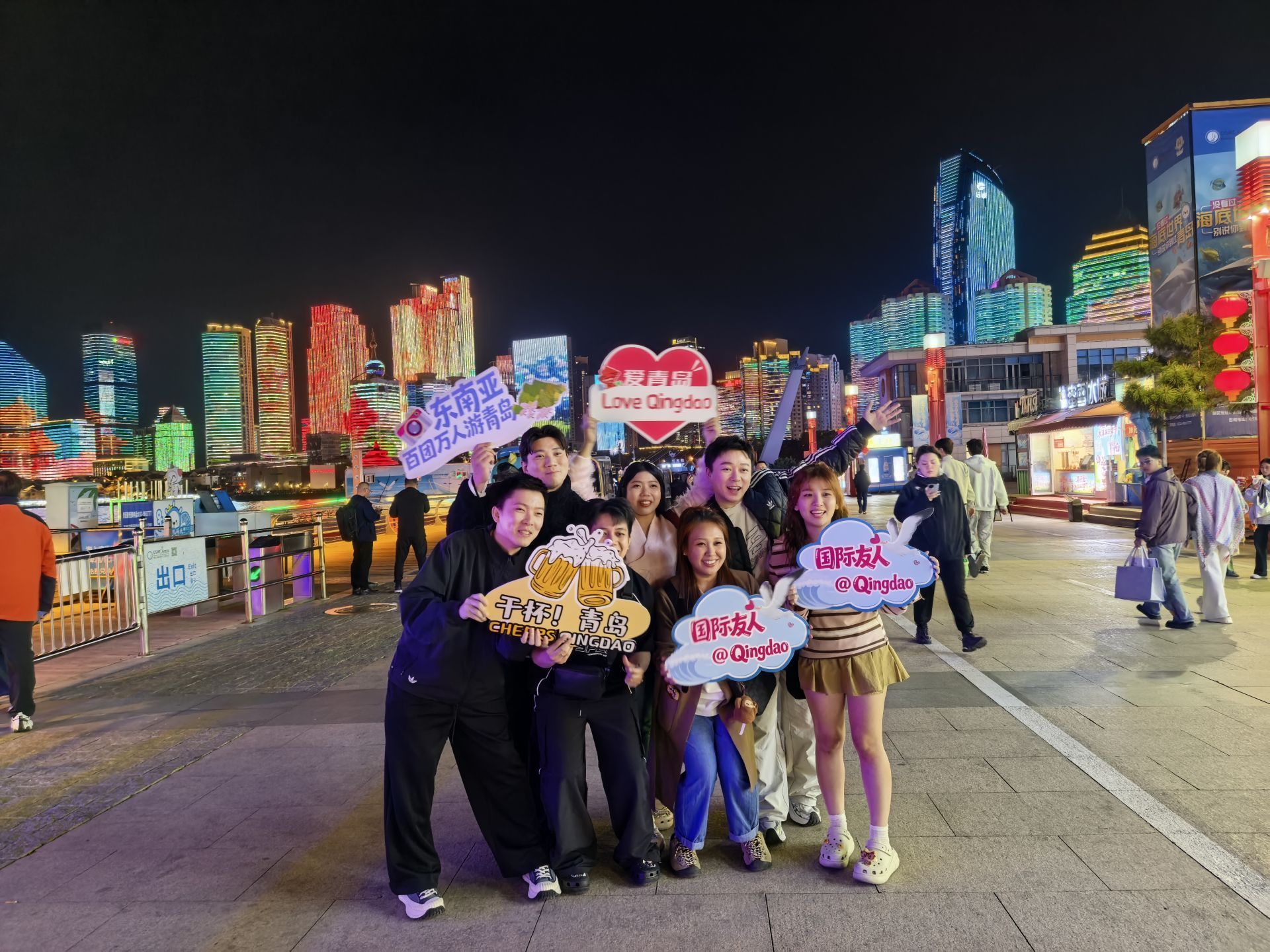 从红瓦绿树到碧海蓝天,从百年欧韵到现代风尚,考察团沉浸式打卡青岛标志性文旅地标,全方位感受城市多元魅力。考察团先后探访八大关风景区、第二海水浴场,邂逅“红瓦绿树、碧海蓝天”的经典滨海风情;走进青岛康有为故居纪念馆、德国总督楼旧址博物馆,品读百年建筑里的历史文脉;驻足青岛啤酒博物馆,品味醇香啤酒文化与工业旅游魅力;漫步台东步行街、奥帆中心,感受老城烟火气与现代都市活力;夜游浮山湾,乘船观赏璀璨灯光秀,沉浸式体验青岛“山海城湾”交融的独特夜景。一路走、一路拍、一路赞,网红们以镜头为媒,将青岛的自然风光、人文底蕴与城市气质实时传递至海外,让马来西亚民众云端“邂逅”时尚青岛。