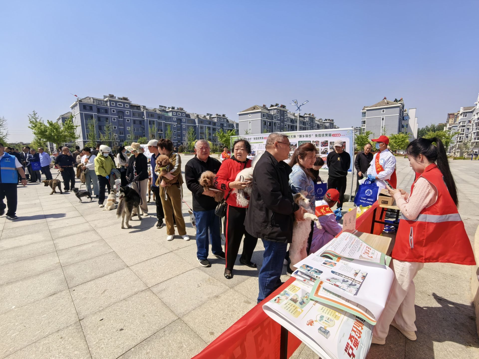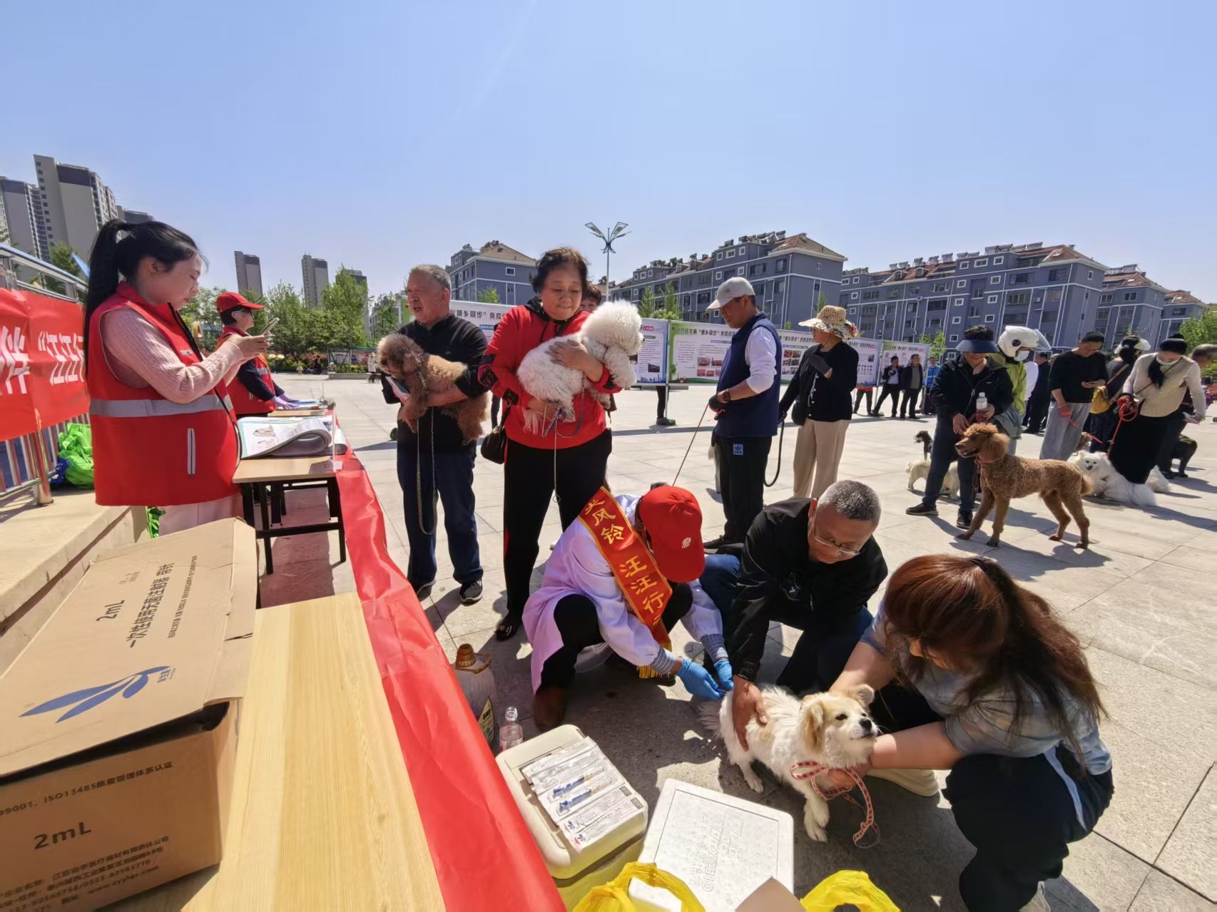 便民服务进社区,犬只免疫直达家门。在山水龙苑社区广场,“汪汪行动”乡村行犬只狂犬病免疫宣传与现场服务同步开展。现场设置青岛市狂犬病免疫成果展示区,生动展示全市科普“大篷车”赶大集、免疫服务“六进”、“汪汪行动”等特色工作举措,以及“定点+流动+帮扶”多元化免疫服务模式的实践成效。在专业免疫服务区,兽医技术人员与养犬居民零距离沟通,免费为犬只开展健康体检、狂犬病疫苗接种和查漏补免服务,切实把便民惠民服务送到群众家门口。不少养犬居民主动携带爱犬前来参与,纷纷对政府贴心便民的服务举措点赞认可。