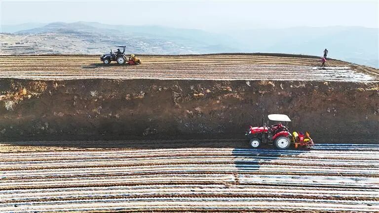 新型农机具在定西梯田中作业。 图源:甘肃日报
