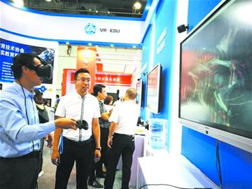 7月10日,国际互联网教育高峰论坛及应用成果展览在青岛会展中心举办。这是2017国际信息化大会的配套活动。戴上VR眼镜,身临其境观看星球的运行,用两节课的时间,二三年级的小学生都可以搭建自己的3D环境,把脑海中的情景生动呈现在同学们眼前……在国际互联网教育应用成果展览上,国内外60余家知名企业展示的前沿教育科技,VR技术和教育的结合成了最热门的展品。本次展会共两天时间,以“互联网时代的教育变革与创新——大数据、云计算、混合式教育、个性化学习”为主题,汇集了国内外60余家知名企业的最新技术和产品。