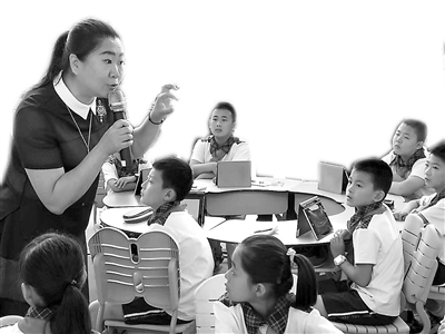 图二为成果展上一位老师正借助平板电脑提供的丰富信息资源给学生上示范课。本报记者 孙军 摄