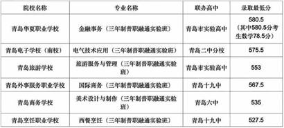 晚报讯 7月25日,备受瞩目的2017年普职融通班录取分数线公布。 6个普职融通班录取最低分均超过民办普通高中学校最低录取控制线,其中青岛华夏职业学校与青岛市实验高中合作的金融事务专业以录取最低分580.5分的成绩拔得今年头筹。其余5所学校普职融通班最低录取线也超过500分。