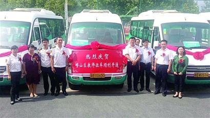 ■昨日上午,“崂山区教师班车开通仪式”在崂山区北宅街道十一中举行,宣告由崂山区政府每年出资约360万元筹建的教师班车正式开通运行。班车共设置了31条线路,最远路线达到59公里,往返市区到王哥庄、北宅、沙子口等街道,构筑起一个40分钟通勤圈,可解决崂山区近600名在王哥庄、北宅、沙子口等街道工作、在市区居住的教师上下班距离远、不方便的问题。