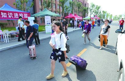 学校的“数字迎新系统”已经提前录入了所有学生的信息。昨天,记者来到新生报到处,各个学院分别设置了自己的报到摊位,新生只要携带准考证、身份证和录取通知书即可,通过扫描通知书上的条形码,即可在迎新系统里完成电子报到,领取校园卡和《青岛校区学习生活指南》等材料。