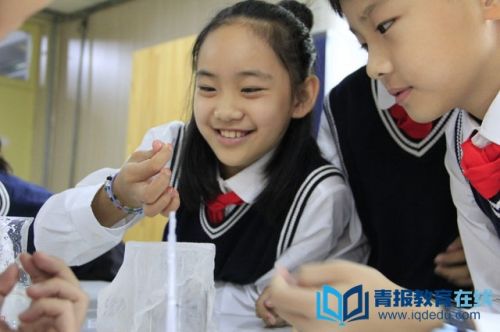 市南区实验小学校长朱雪梅在接受青报教育在线iqdedu.com采访时说,学生们从三年级开始,每学年都有四节海洋实验课,这个课可以说是孩子们最喜欢的了。大海就在身边,可海洋知识孩子们未必知道,通过自己动手实验学到的知识,孩子们记得特别牢。而且在实验过程中,孩子们会接触量杯、烧杯、滴管等实验用具的使用知识,这也为中学的理化生实验课打下了良好的基础。海洋实验课的老师都是中科院海洋研究所的研究员或博士生来上课,每年他们会专门准备100节小学生海洋课,供我们选择。