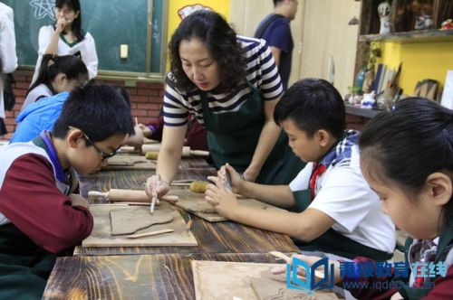 教室令人意想不到,教师也让你不可思议,他可是中国陶瓷艺术与设计协会常务理事吕竹玉老师。吕老师说,我们希望陶艺从美术课进入小学,成为3-5年级的普及课,孩子们的想象力和创造力是无限,他们创作的作品有的甚至可以和大师匹配的。