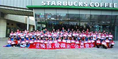晚报讯 10月 21日,来自公交市北巴士有限公司第四、第六分公司书记纪爱琍、孙仁国带领的驾驶员子弟,与胡小囡、刘海青、王韩超率领的洛阳路第二小学3年级1、3、4班小学生,在李沧乐客城广场开展“读晚报,做微尘”公益售报社会实践活动。 77名小伙伴仅耗时45分钟,900份晚报就已售罄,筹得报款931元,其中扫码支付182笔、197元爱心报款。