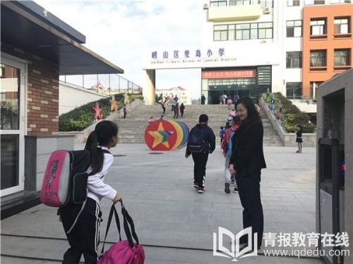 “早上好啊!”“慢点走,不要跑!”“你今天的衣服真好看!”……10月19日早上7点多,青报教育在线来到麦岛小学门口的时候,杨屹校长已经跟当天执勤的老师们一起站在学校门口,迎接来上学的孩子们。只要来了学生,她都会身体微微前倾,笑着跟孩子打招呼。学生们也纷纷主动,或鞠躬或敬礼问候校长、老师。