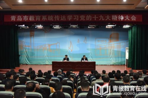 青报教育在线讯iqdedu.com 2017年10月31日上午,青岛召开全市教育系统会议,学习宣传贯彻党的十九大精神,部署推进全市教育系统深入学习宣传贯彻党的十九大精神工作。市委常委、市委高校工委书记、市教育局局长、书记邓云锋出席并讲话,市委高校工委副书记、市教育局党委副书记车景华主持会议。