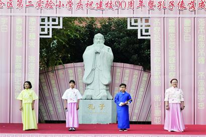 李沧区第二实验小学校长相蔚表示,值此建校90周年之际,孔子像的落成厚重了学校文化底蕴,更翻开了李沧区第二实验小学又一个十年发展的崭新篇章。学校也将以此为契机,深入挖掘中华优秀传统文化蕴含的思想观念、人文精神、道德规范,结合时代要求继承创新,开设国学课及各类活动让孩子们感受传统文化的博大精深,创建孔子学堂,培养学生积极向上、乐观向学的学习品质。通过小学六年的学习滋养,让中华文化展现出永久的魅力和时代风采。