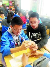 慢慢的,大部分的学生尝到了成功的滋味。曹春梅接着提问:如果土豆就是学习中遇到的困难,而吸管是解决方法,联系学习,这个游戏使同学们有什么感悟? “面对弱势学科要快准狠,避强趋弱,一击必穿透。要知难而上,坚持不懈,用心专一,必要时还要换一种思维。 ”“要善于观察,找到薄弱点后,要专注,有坚持力才能成功。 ”学生们突然明白了老师的用心,纷纷发言。