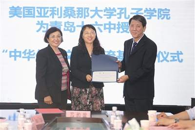 ■美国亚利桑那大学孔子学院为学校授牌“中华传统文化交流基地”。