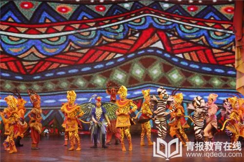 青报教育在线讯iqdedu.com 1月26日下午,青岛市人民会堂被临时打造成丛林世界,崂山区麦岛小学的孩子们化身狮子、灰狼、野牛、野猪、小树……上演了一出精彩绝伦的大型音乐剧《狮子王》。