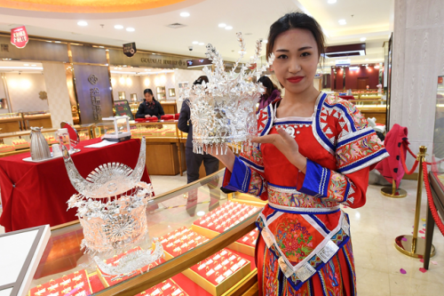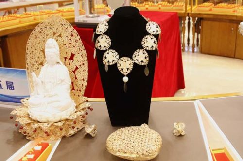 本次品鉴会得到上级主管部门和行业、企业的大力支持,领导、专家纷纷为学徒学生站队打CALL。此次展示的学徒作品有掐丝、珐琅、錾花、玉雕、微镶等五大类共48件产品,由该校学生模特队通过“珠宝秀”的形式依次为来宾进行了一一展示,熠熠生辉的珠宝为在场嘉宾带来了一场视觉盛宴。