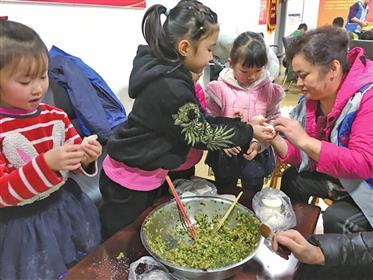 本报讯(记者 国瑾)“把馅料放在饺子皮中间,然后把两边捏起来就行了,捏的时候轻一点……