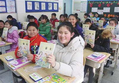 昨日,是我市各中小学报到的日子。当天,中韩小学的学生们领到了新学期用书和用具,都很高兴。记者 盛军 摄